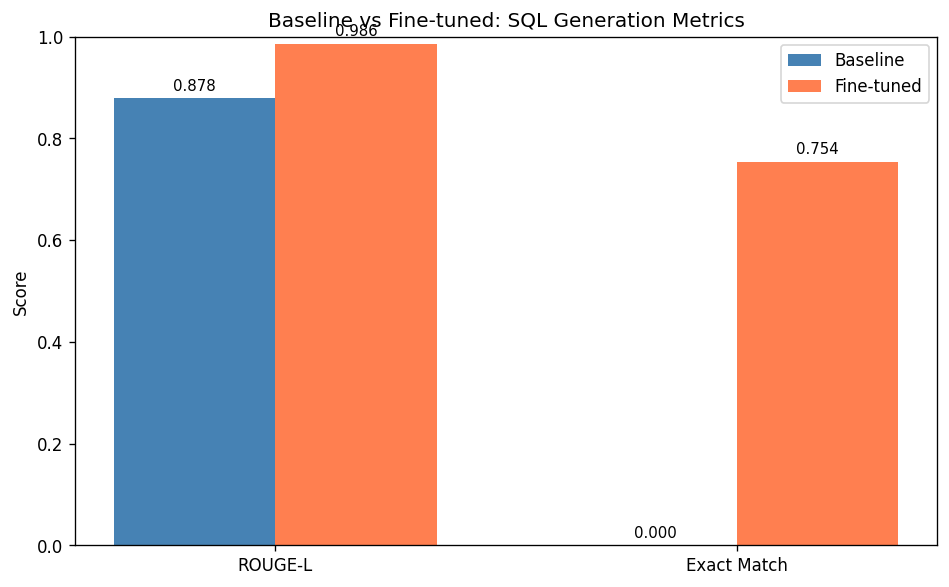 executable SQL. Fine-tuning teaches it to conform to the task's output format.