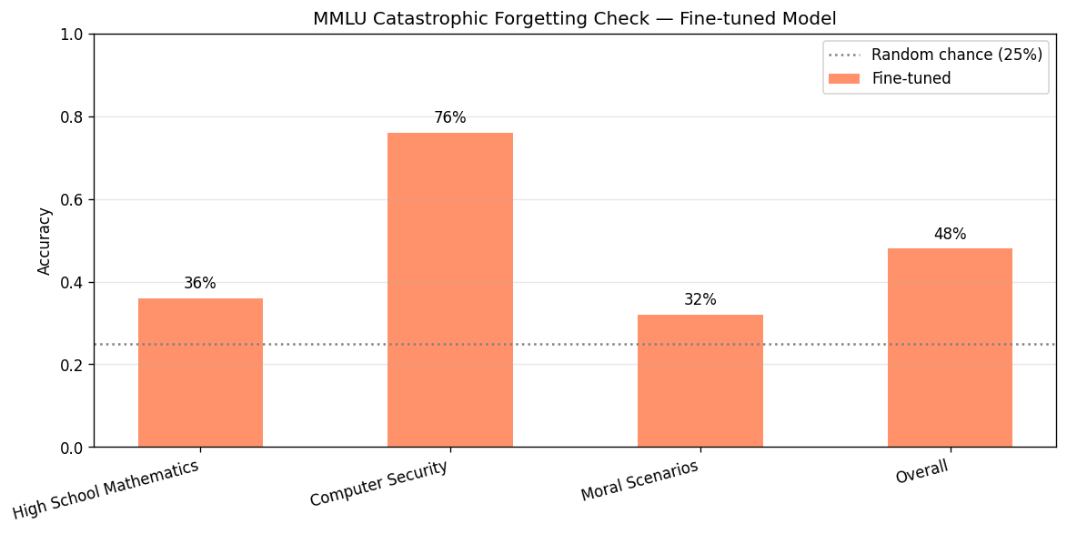 | MMLU Subject | Fine-tuned | vs. Random (25%) |